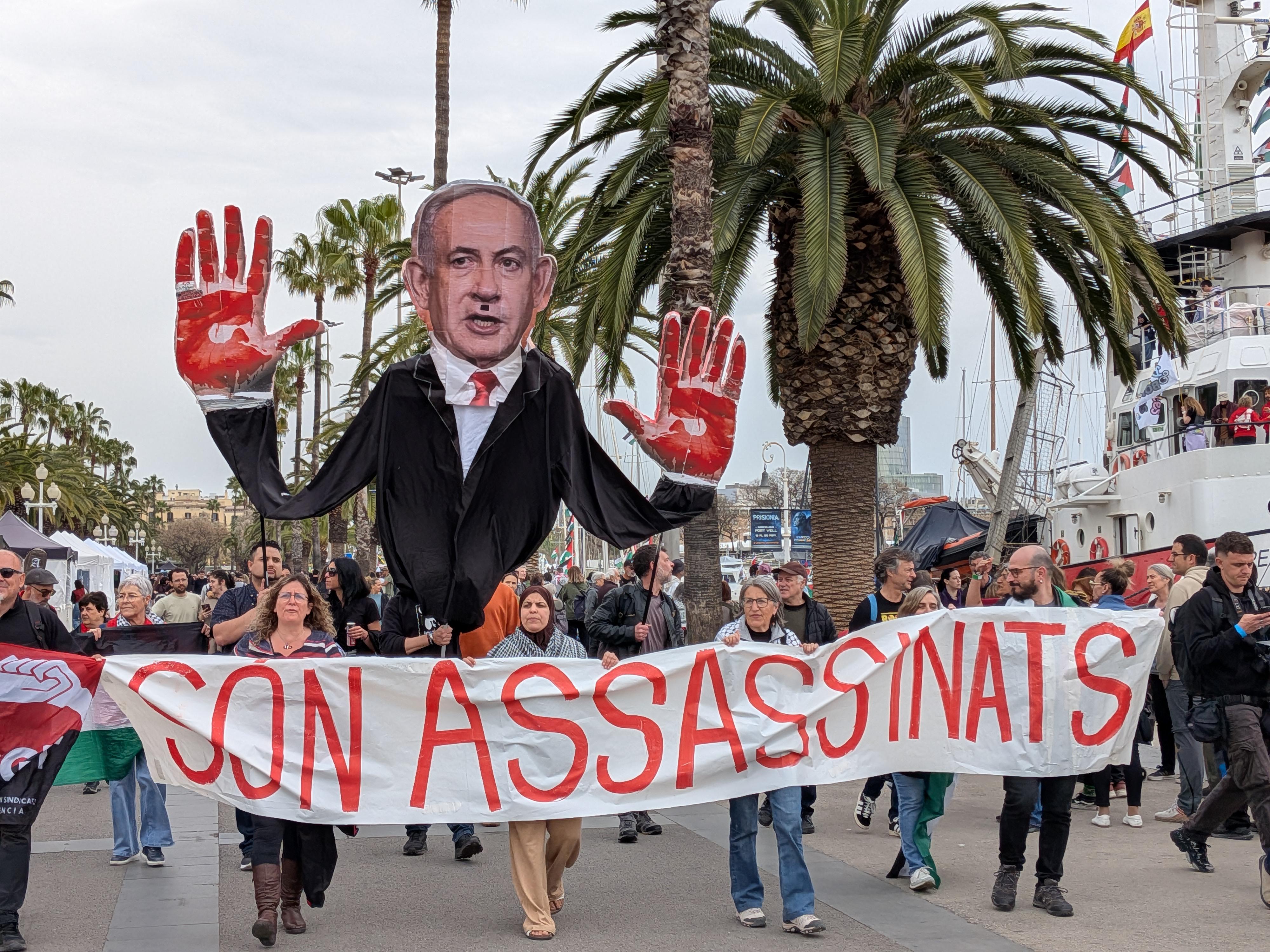Asà es como hay que presentar a este genocida, como lo que es. Un genocida. LÔstima que Trump no estÔ a su lado.