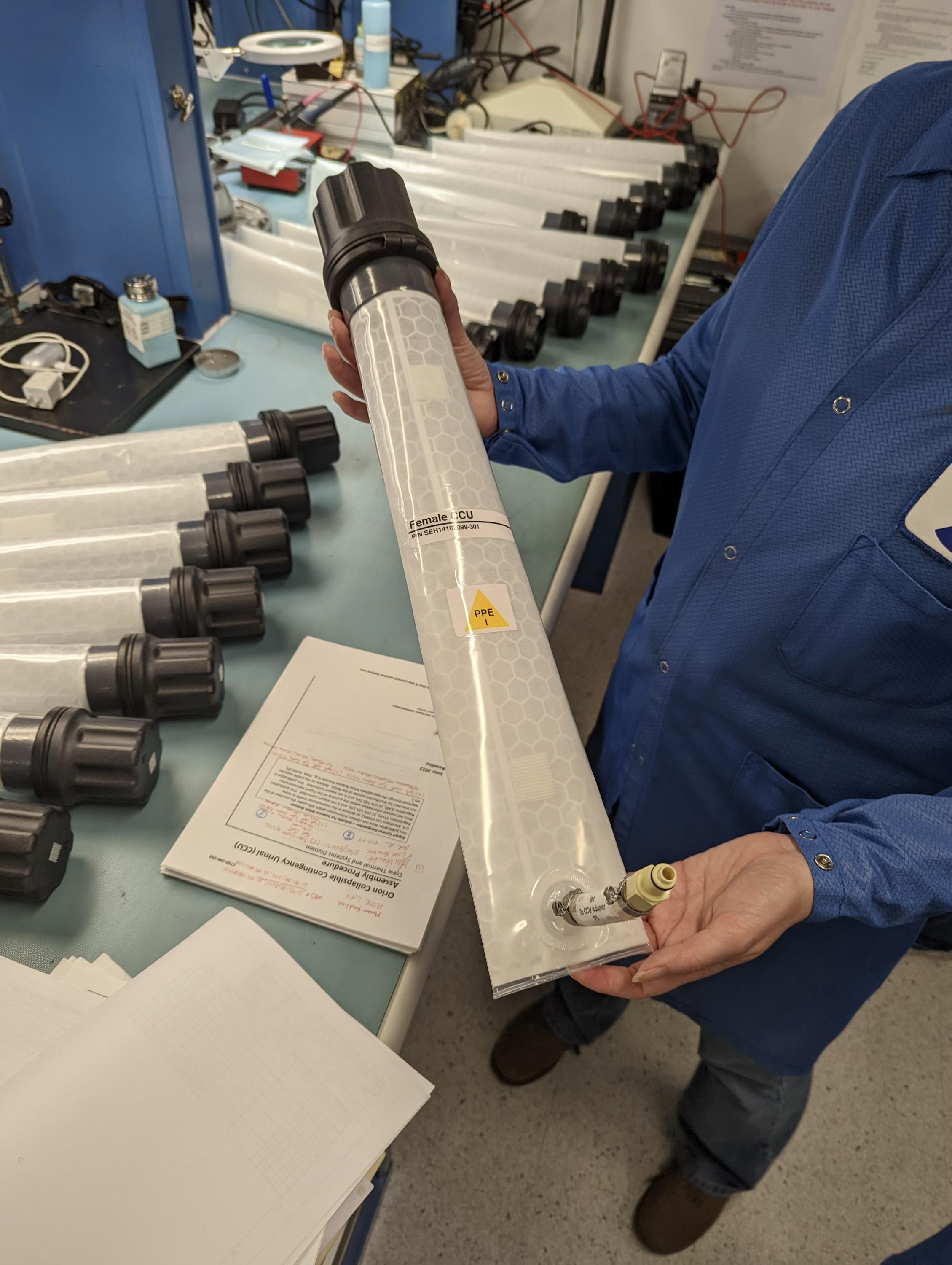 The Collapsable Contingency Urinal (CCU), used on Artemis 2 after a toilet malfunction. Essentially an open container (reusable, sealable, and drainable) that controls the urine-air interface using capillary forces. When you are in cislunar space with a broken toilet, you need contingencies and the CCU replaces the need for about 25 pounds of diapers.