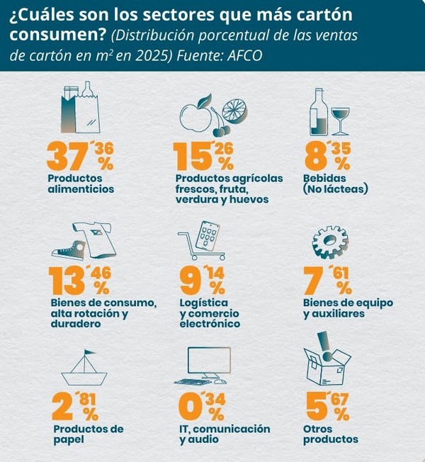 Corrugated cardboard remains an essential material for high-impact sectors. In 2025, the food industry accounted for 61% of demand; fast-moving and durable consumer goods represented 13.46%; logistics and e-commerce, 9.14%; and capital and auxiliary goods, 7.61%.