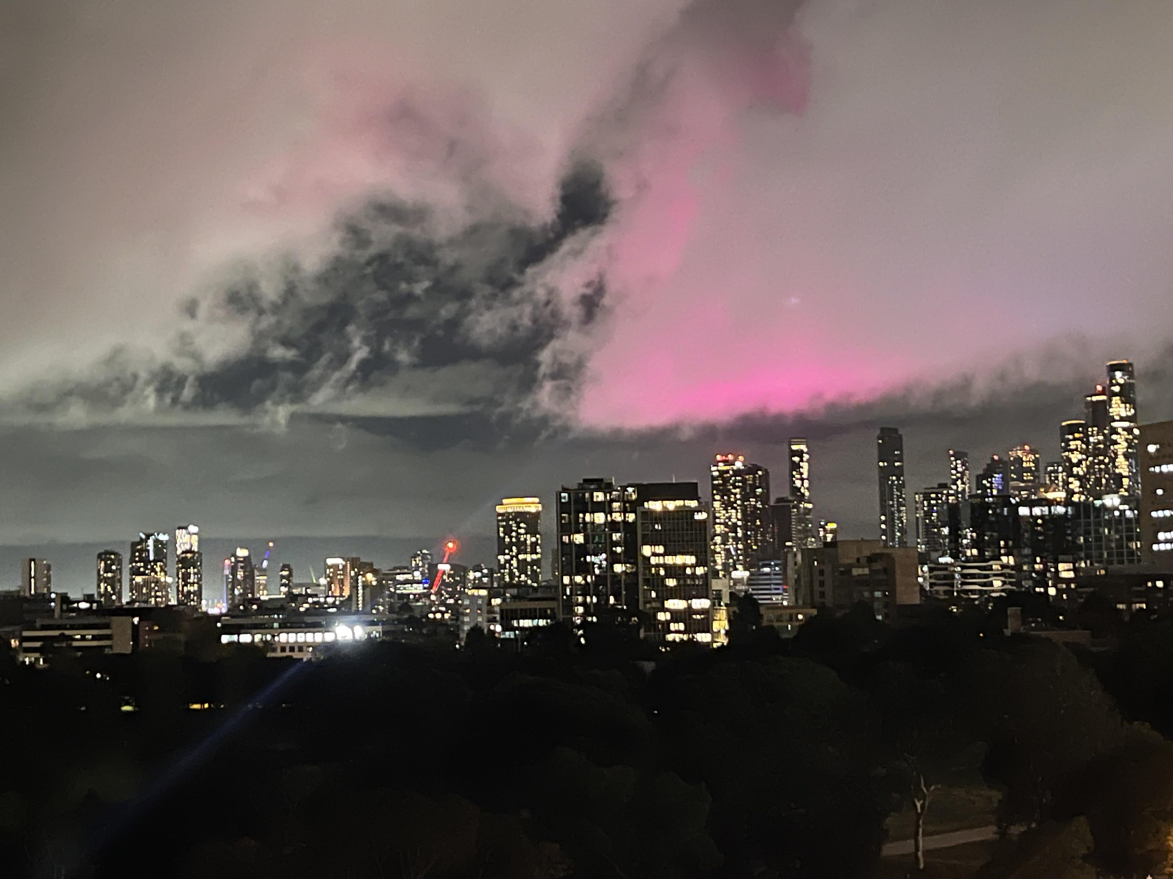 In addition to the fact that aurora seekers would need to be looking towards the SOUTH for it (looks like OP is looking in a western direction given that’ll be about where Docklands is, behind the CBD), for any auroral visibility within Victoria you’ll need a Kp index of 6 or above (6 is an active solar storm, anything else over that is a severe solar storm. )