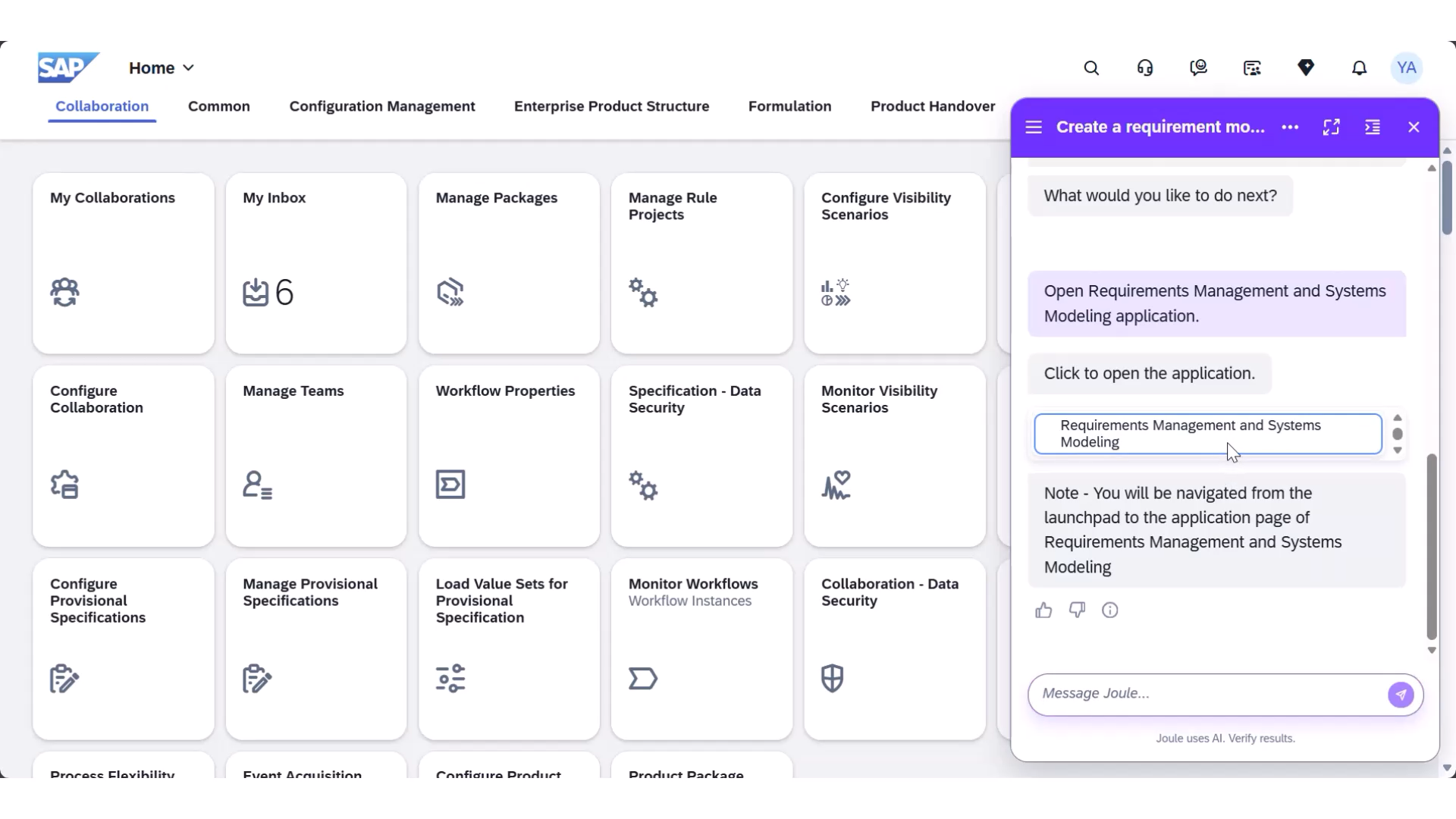 Requirements managers now have a more direct path to creating requirement models within SAP Integrated Product Development by using natural language commands with Joule. This feature allows them to initiate new models, specify names, and apply templates in a single step, completely bypassing the need to navigate through complex folder structures. This streamlined approach provides a much faster starting point for new projects and empowers users to begin their work immediately without requiring deep knowledge of the repository layout.