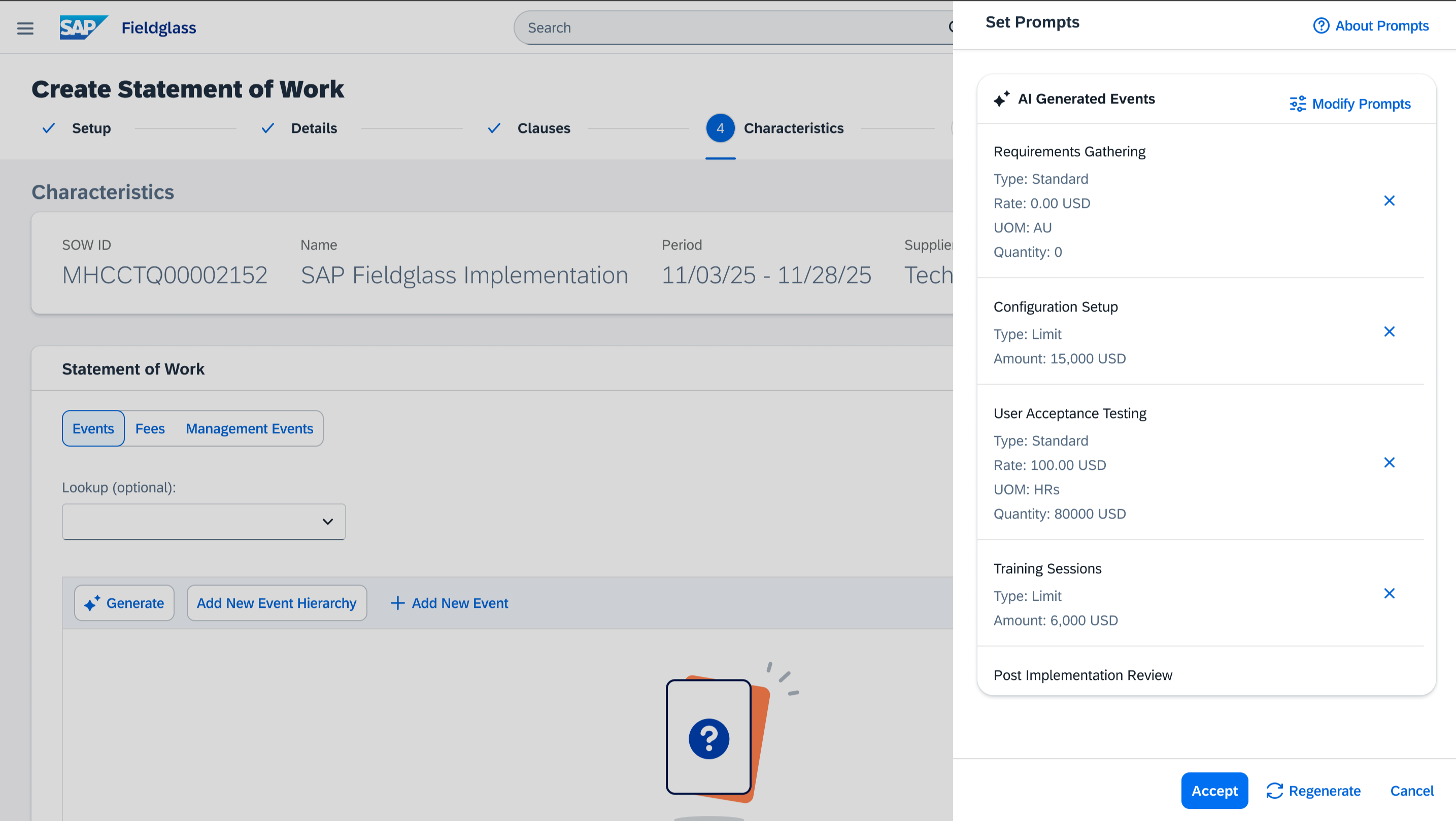 SAP Fieldglass Services Procurement, AI-assisted SOW deliverables creation