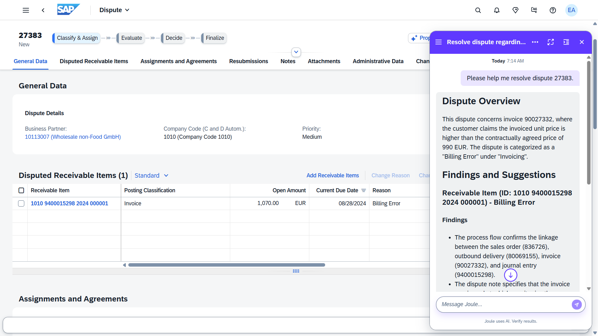 Dispute Resolution Agent (for SAP S/4HANA Cloud Public Edition)