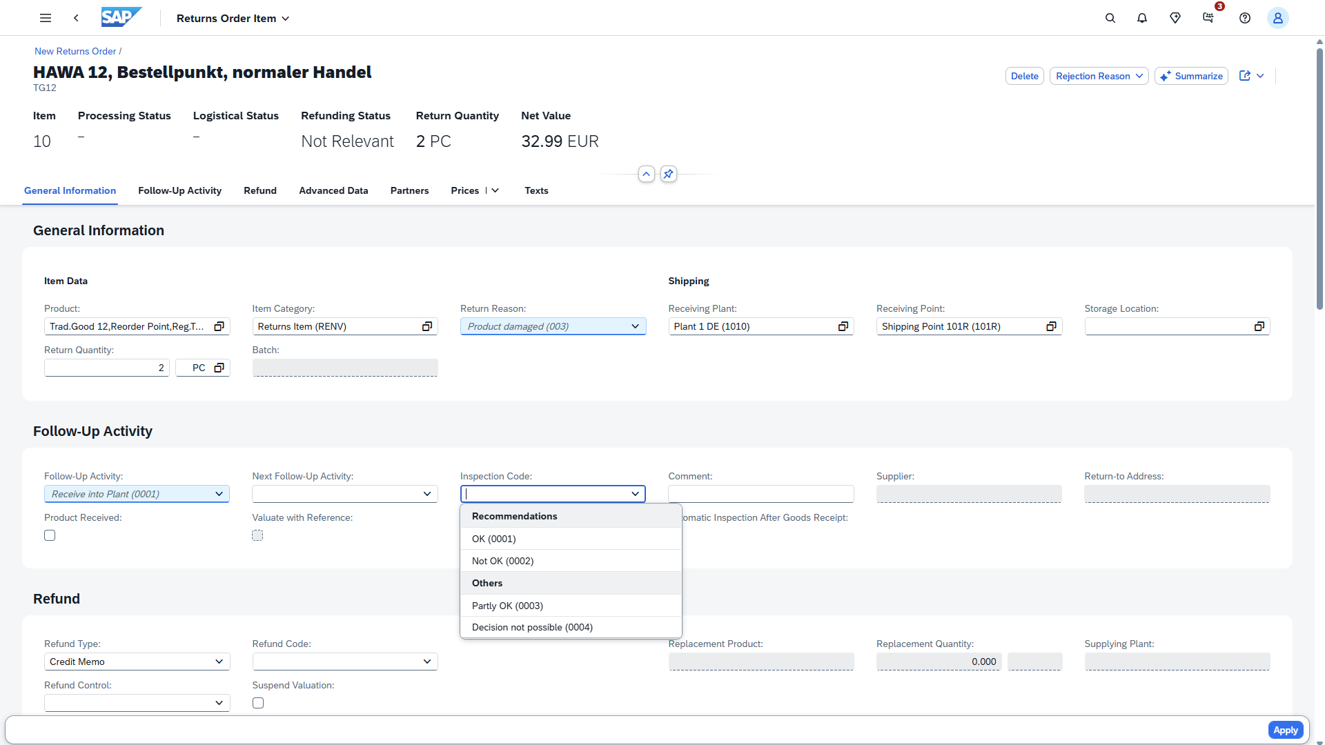 SAP S/4HANA Cloud Public Edition, AI-assisted input recommendations for returns order creation