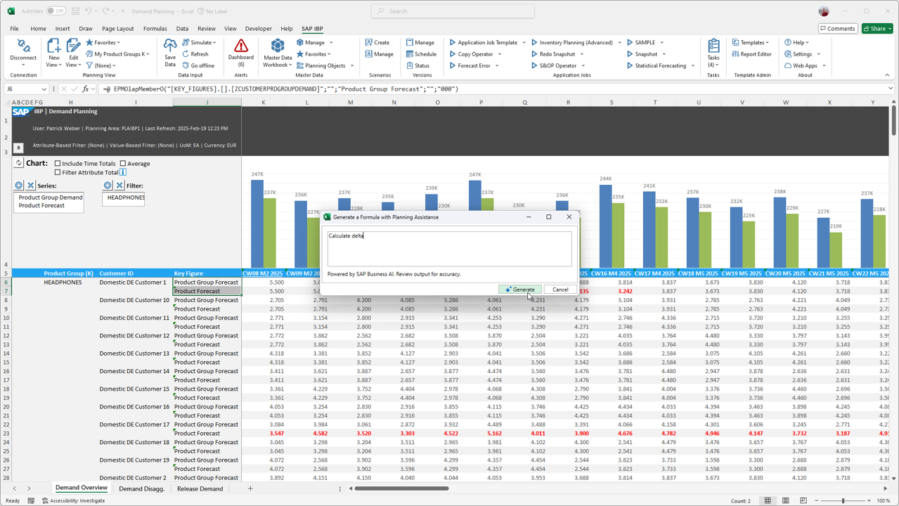 SAP Integrated Business Planning, add-in for Microsoft Excel, AI-assisted planning
