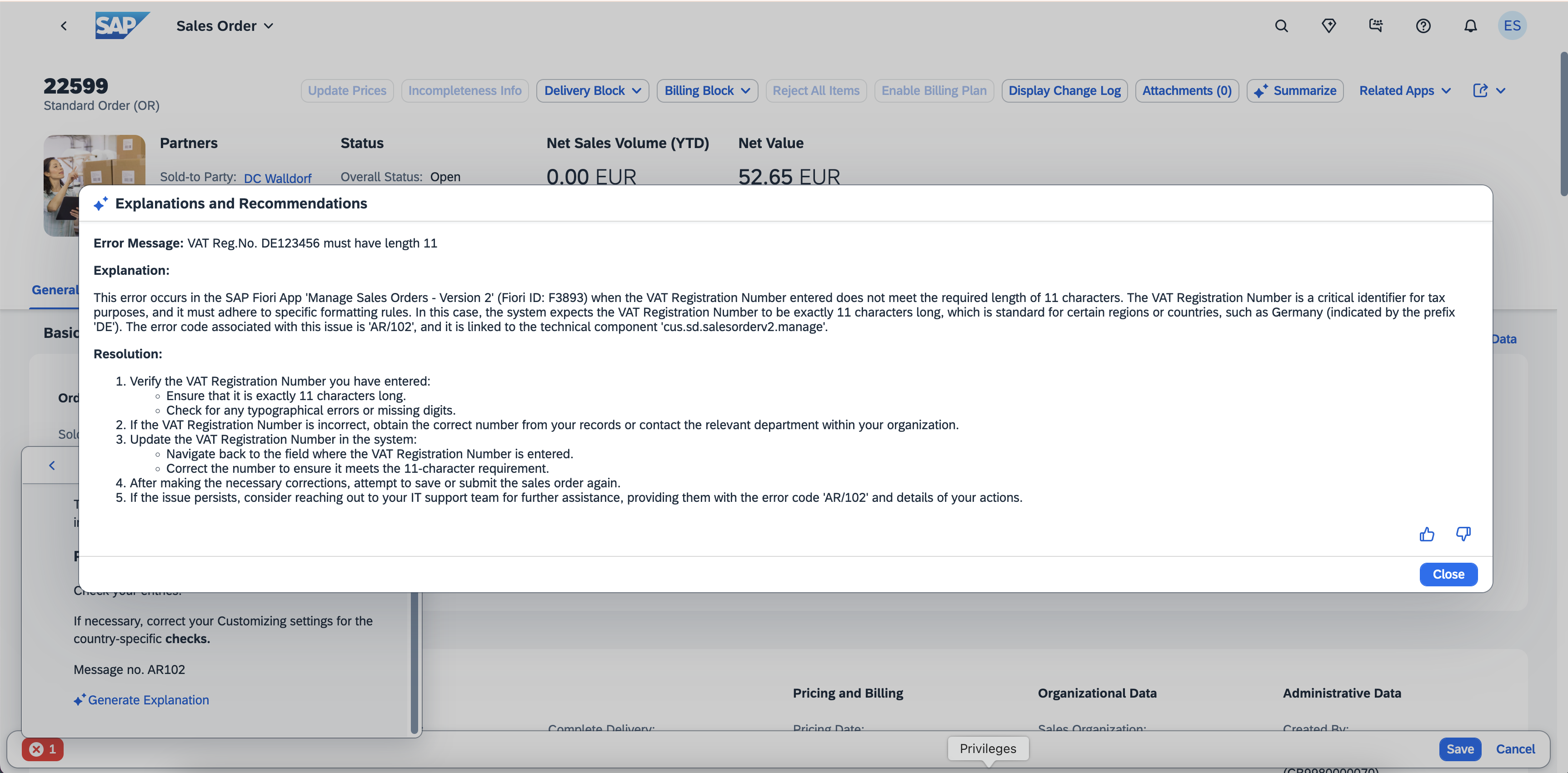 SAP S/4HANA Cloud Public Edition, AI-assisted error explanation