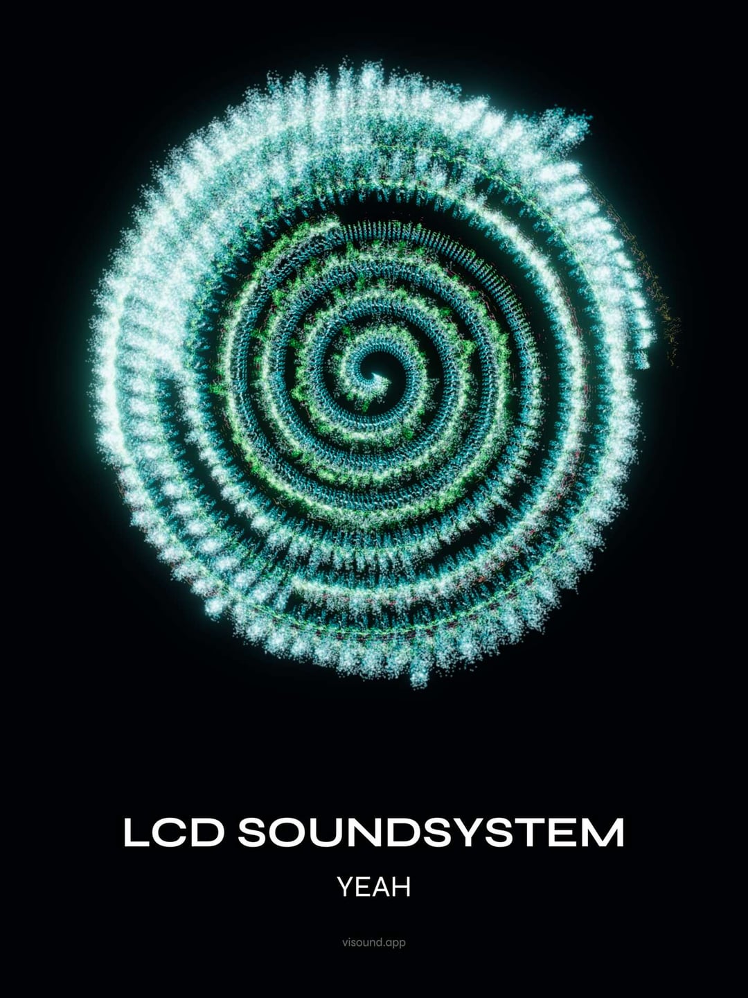 Basically it takes any song, breaks it into 20 frequency bands, and places particles on a spiral based on how loud each band is at any given moment starting from center to outside. More energy = more particles.
