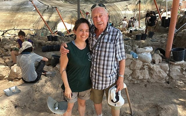 Archaeologist Shlomit Bechar, left, at the Tel Hazor site in the Upper Galilee with Hebrew University Prof. Amnon Ben-Tor in an undated picture. (John Rinks)