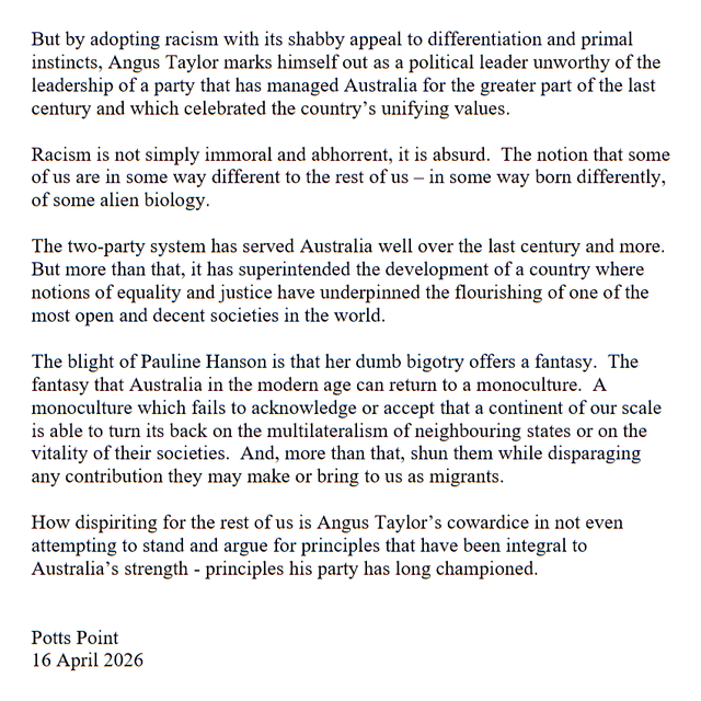 13. He gives them too much credit. He specifically points out the LNP the party of Menzies, Turnbull etc. but we can’t forget it’s the party of Howard, Abbott, Morrison, Dutton.