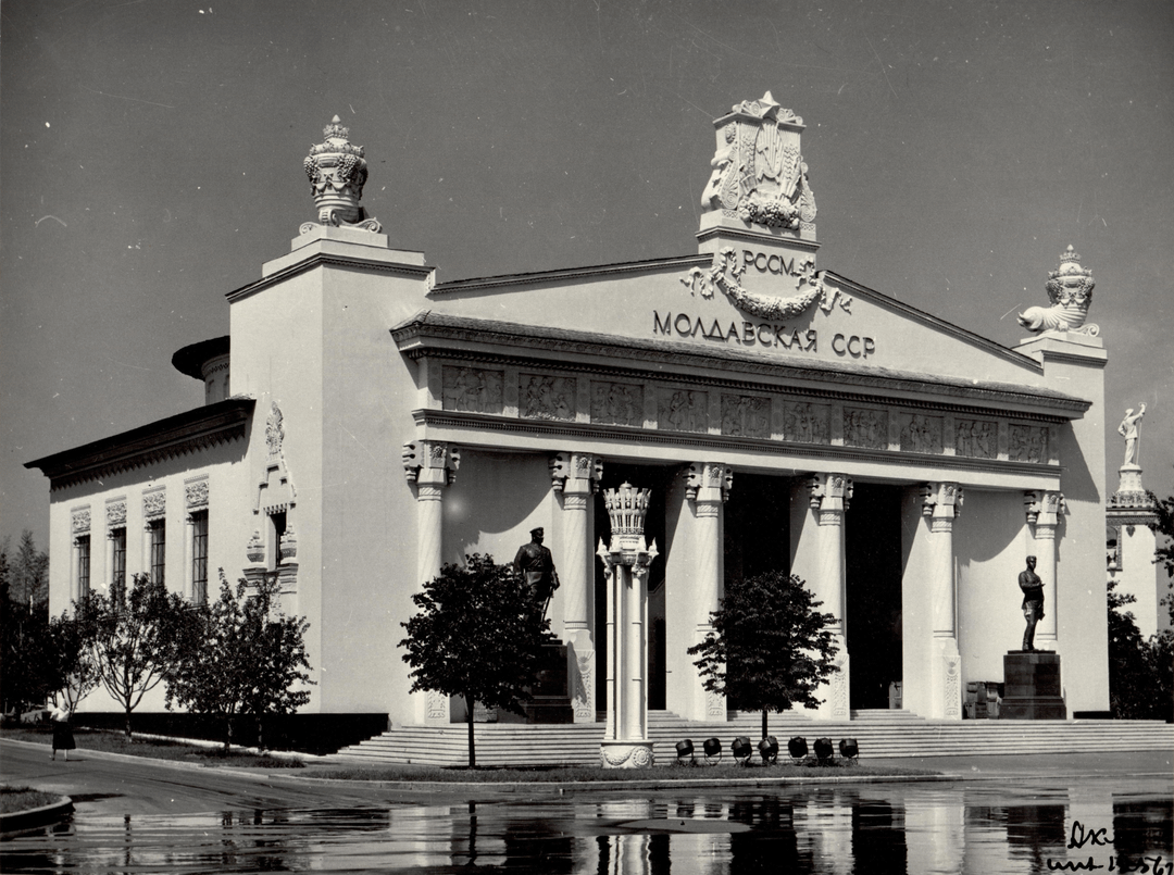 I have concluded that these must be derived from Moldovan tradition, as the window portals on the side wall are clearly from there, and the pavilions of other republics also utilize national elements; however, I haven’t been able to find anything similar to them. Internet searches for "Moldovan architecture" mostly return images of vaguely Byzantine-style churches.