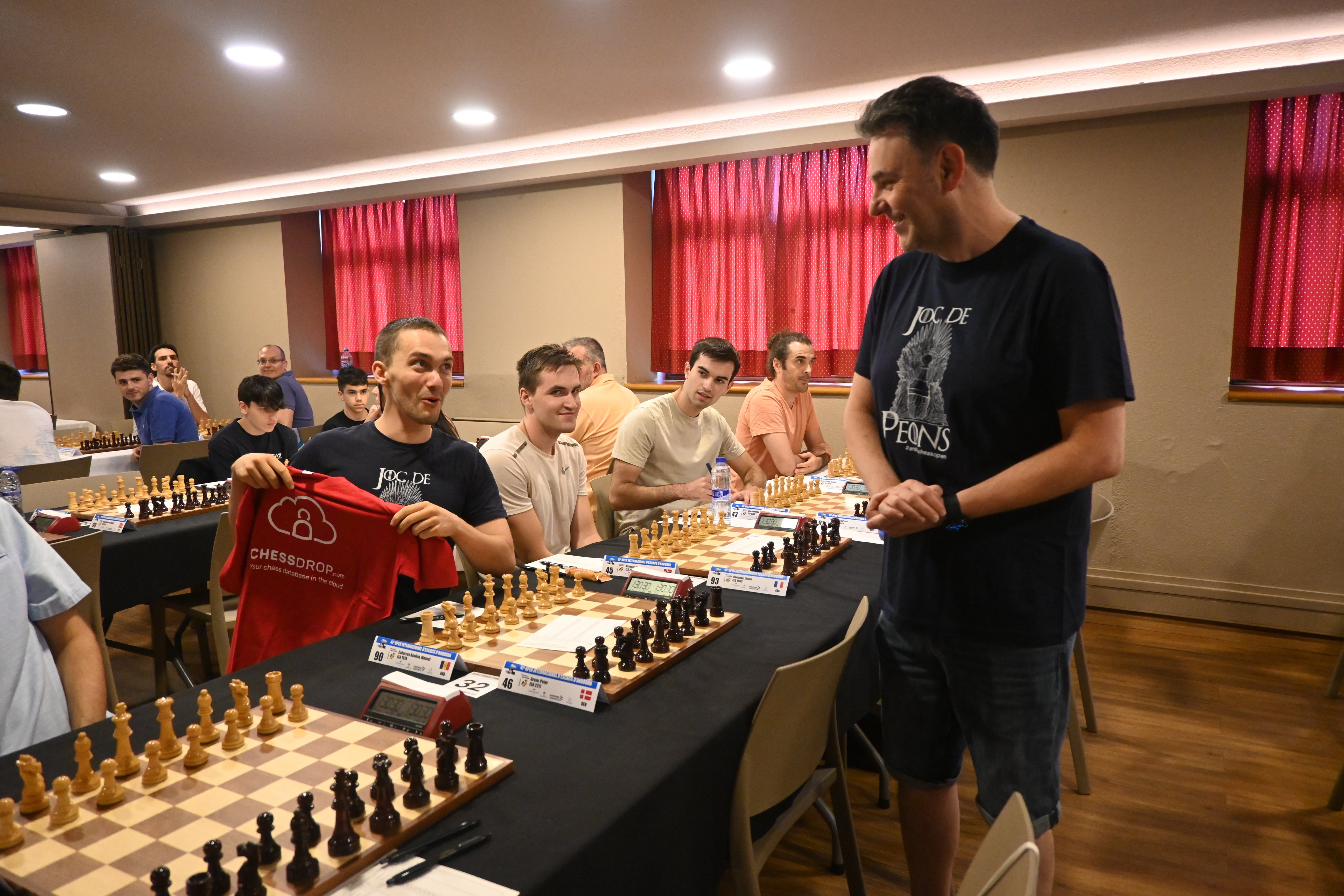 The third round of the tournament began exactly as the second, that is, at 16:00 hours, the organization handed player Manel Cabarcos (AND) his birthday gift, a ChessDrop t-shirt along with a chess keychain. Unfortunately, the result of the game was not favorable, but at least he started the round with an applause from the players present in the hall!