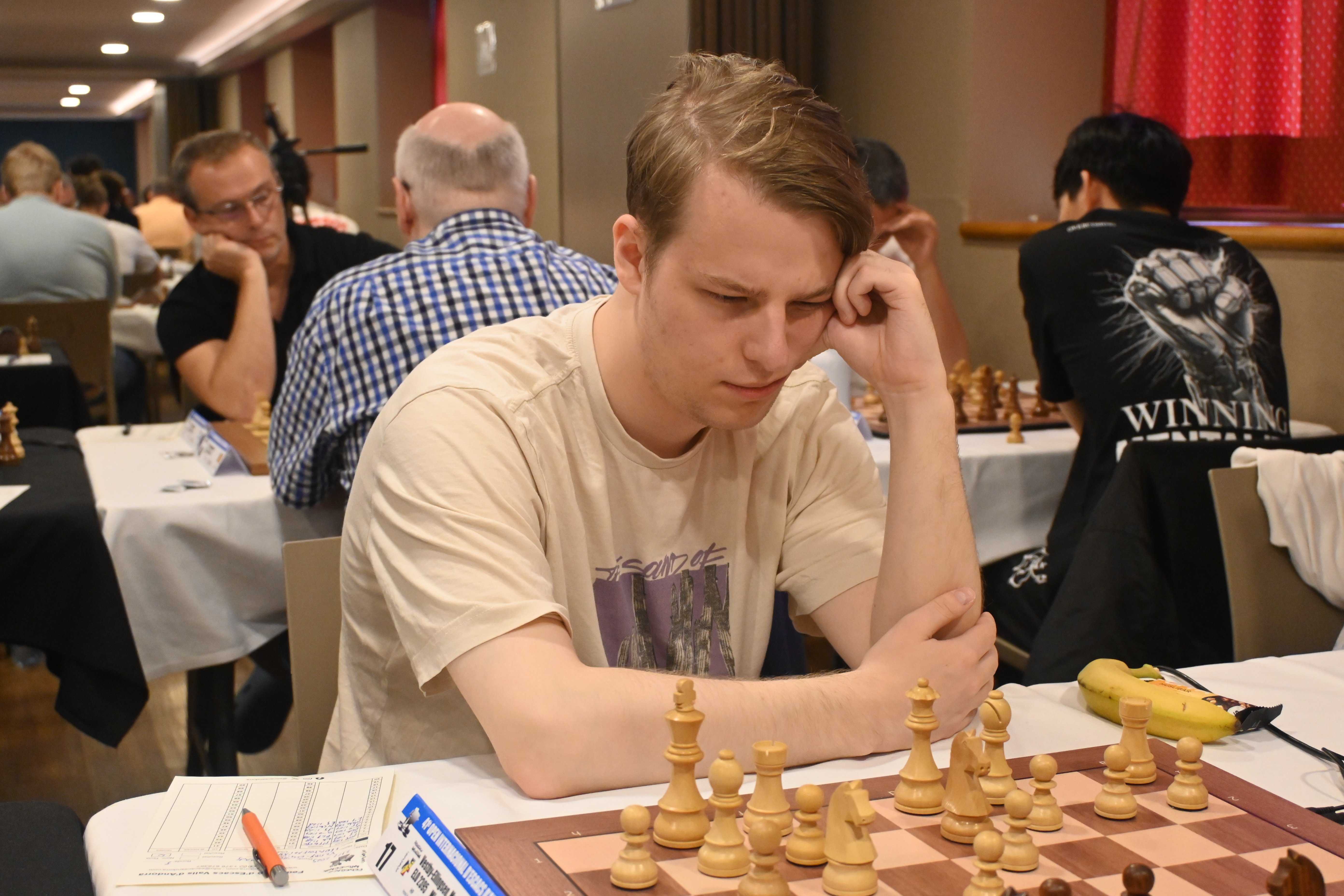 2023 champion, Andrey Sumets, also didn’t have an easy time. It wasn’t until over 4 and a half hours of play that he defeated Italian FIDE master Lorenzo Fava in a clearly advantageous rook endgame.