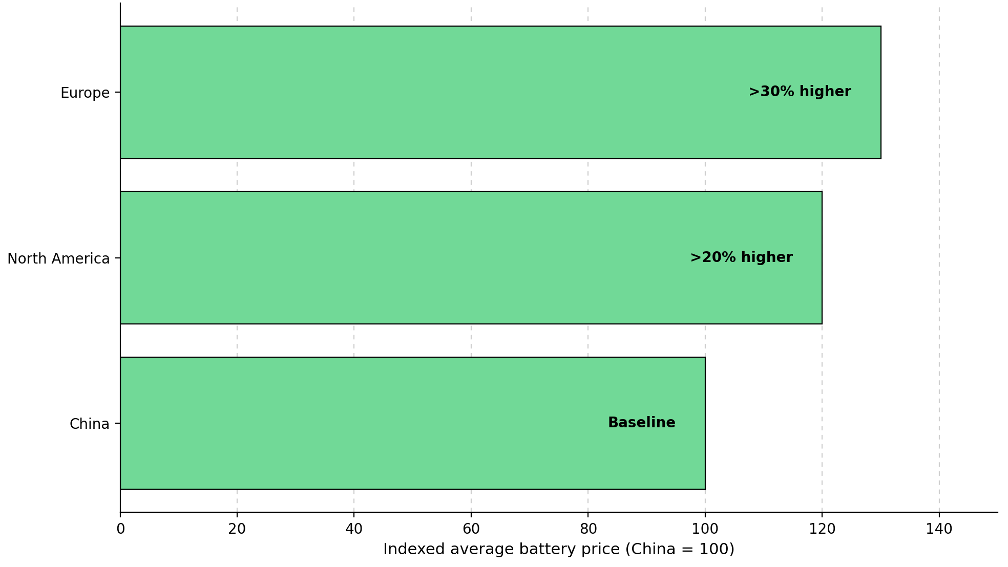 Battery Prices Outside China Remained Structurally Higher in 2024. Source: Crux Investor Research