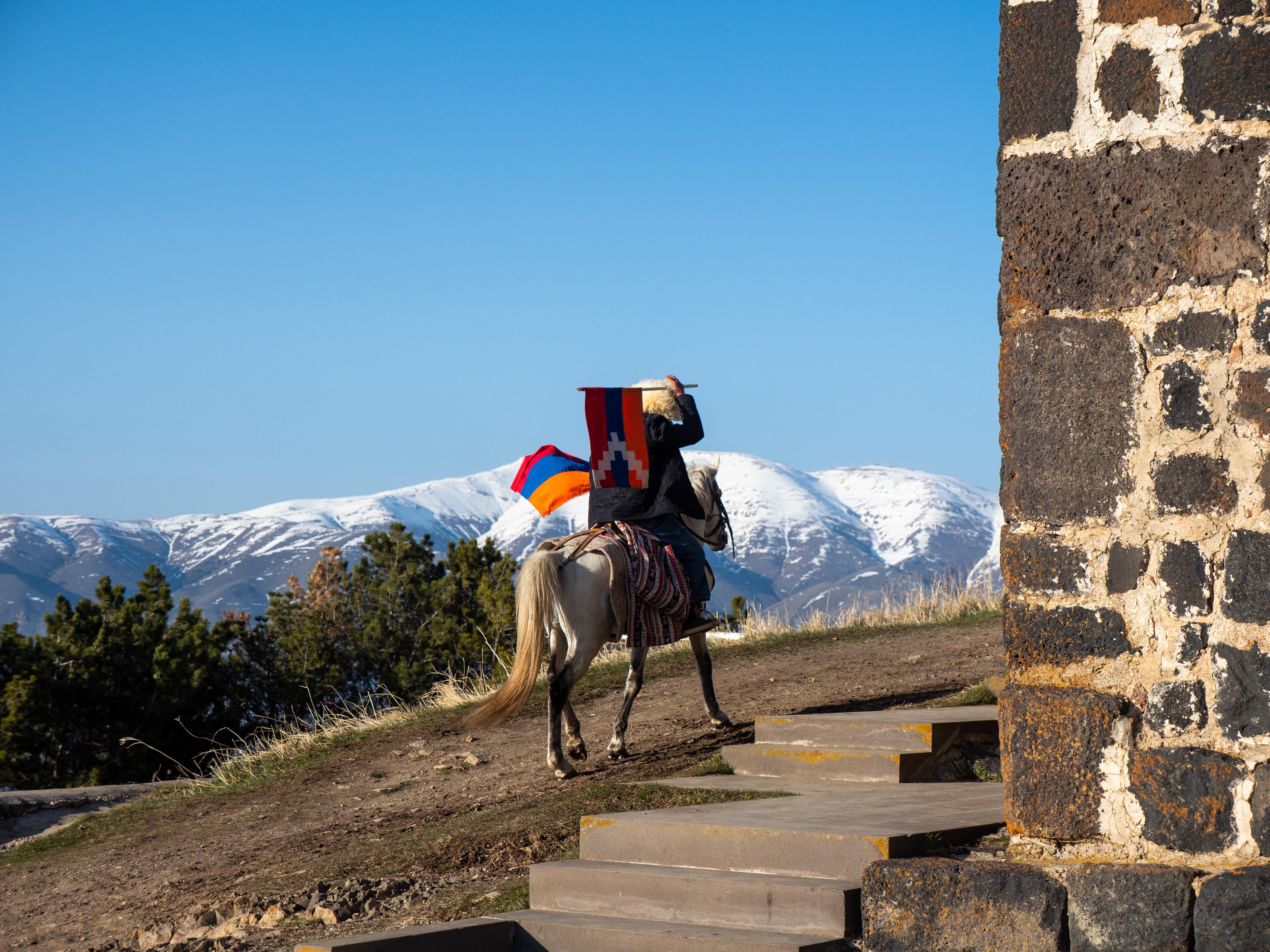 This man’s name is Grisha. He used to be at Gandzasar in Artsakh and take wild photos with tourists on his horse or he would be dancing on his horse for photos. He moved to Sevan after the catastrophe in Artsakh and takes similar photos with tourists. he was homeless when I saw him after he was displaced from Artsakh