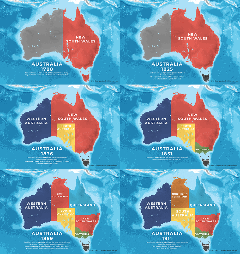 1825 – Van Diemen's Land (Tasmania) separated from New South Wales. The western boundary of New South Wales was extended to longitude 129° East