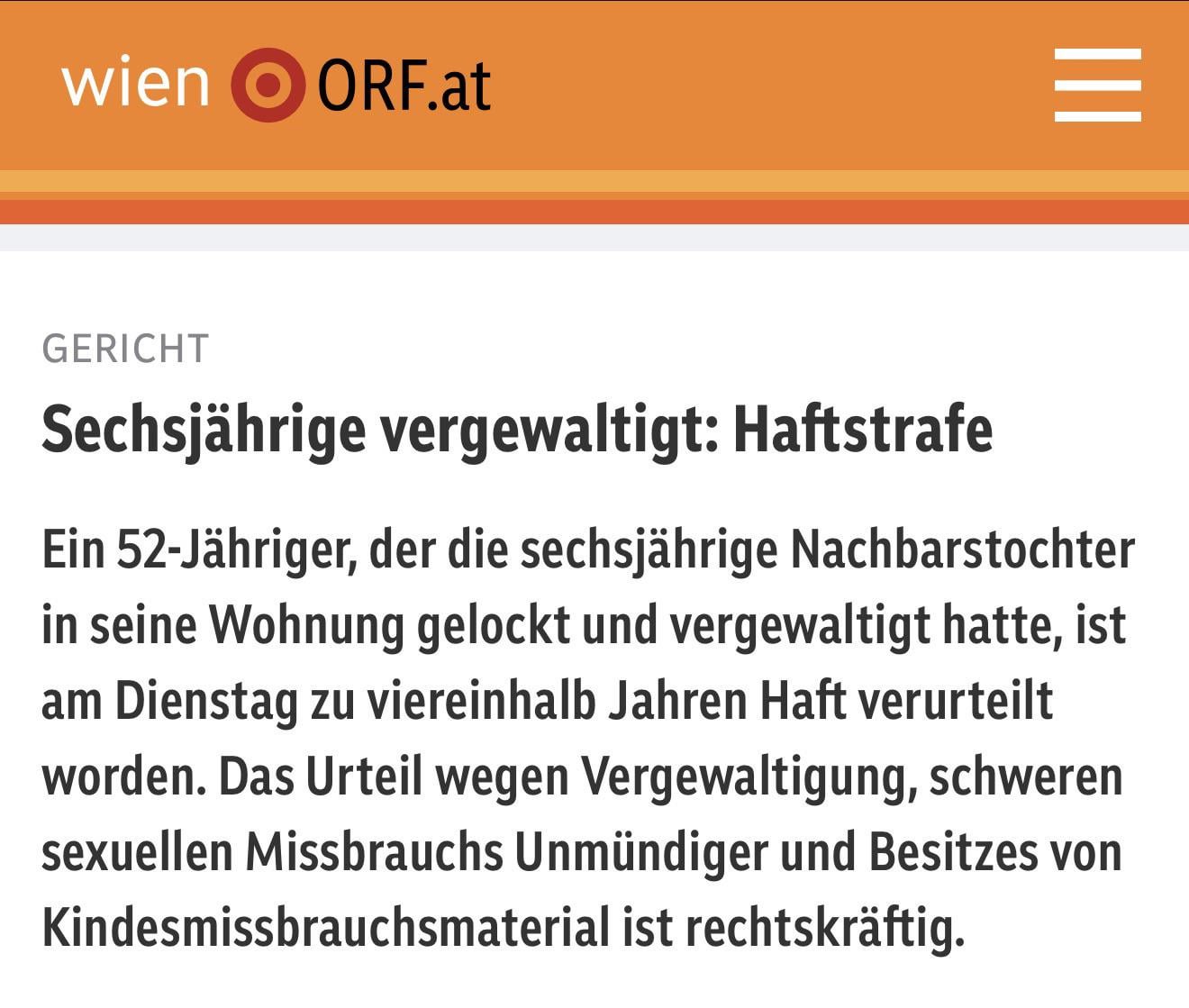 Letztens war ein Fall, in dem ein Großvater seinen Enkel missbraucht hat, der Vater hat ihn angezeigt, Urteil: 8 monate bedingt……
