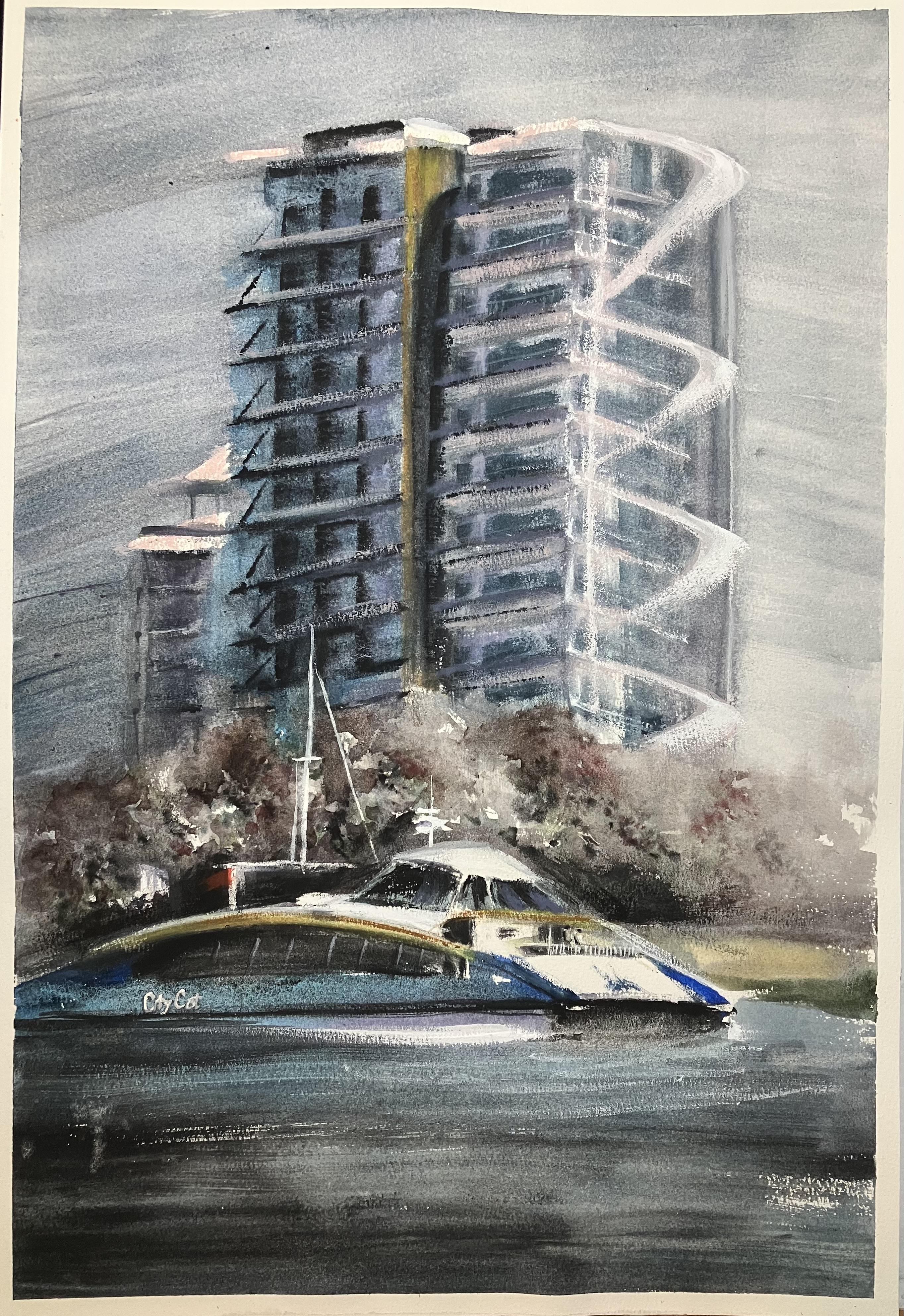 Apartment Block on Coronation Drive, Watercolour