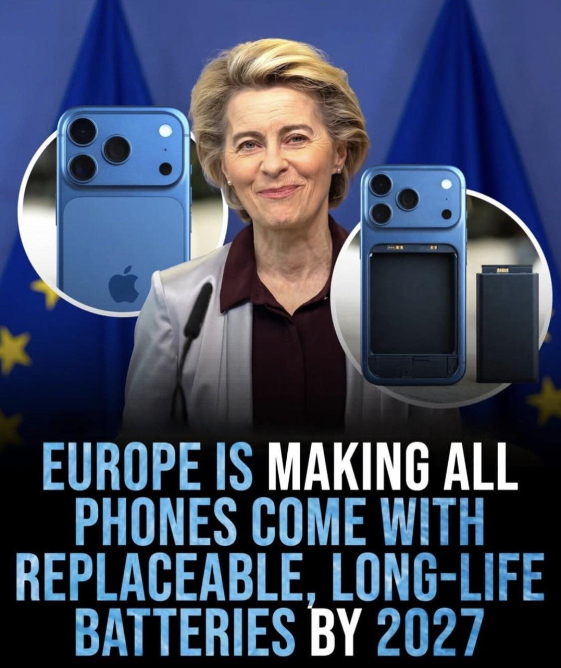 Nechápem prečo je tam práve Iphone keď väčšina iphone lunatikov ich ajtak mení vždy keď vydajú nový model bez ohľadu na to či im batéria ešte drži alebo nie. Ja mám ešte stále staré 13 Mini a baterku som si dal vymeniť za facku bez problémov aj teraz… jediné čo to donesie je nárast cien telefónov alebo rušenie modelov kvôli navýšeným nákladom na vývoj.