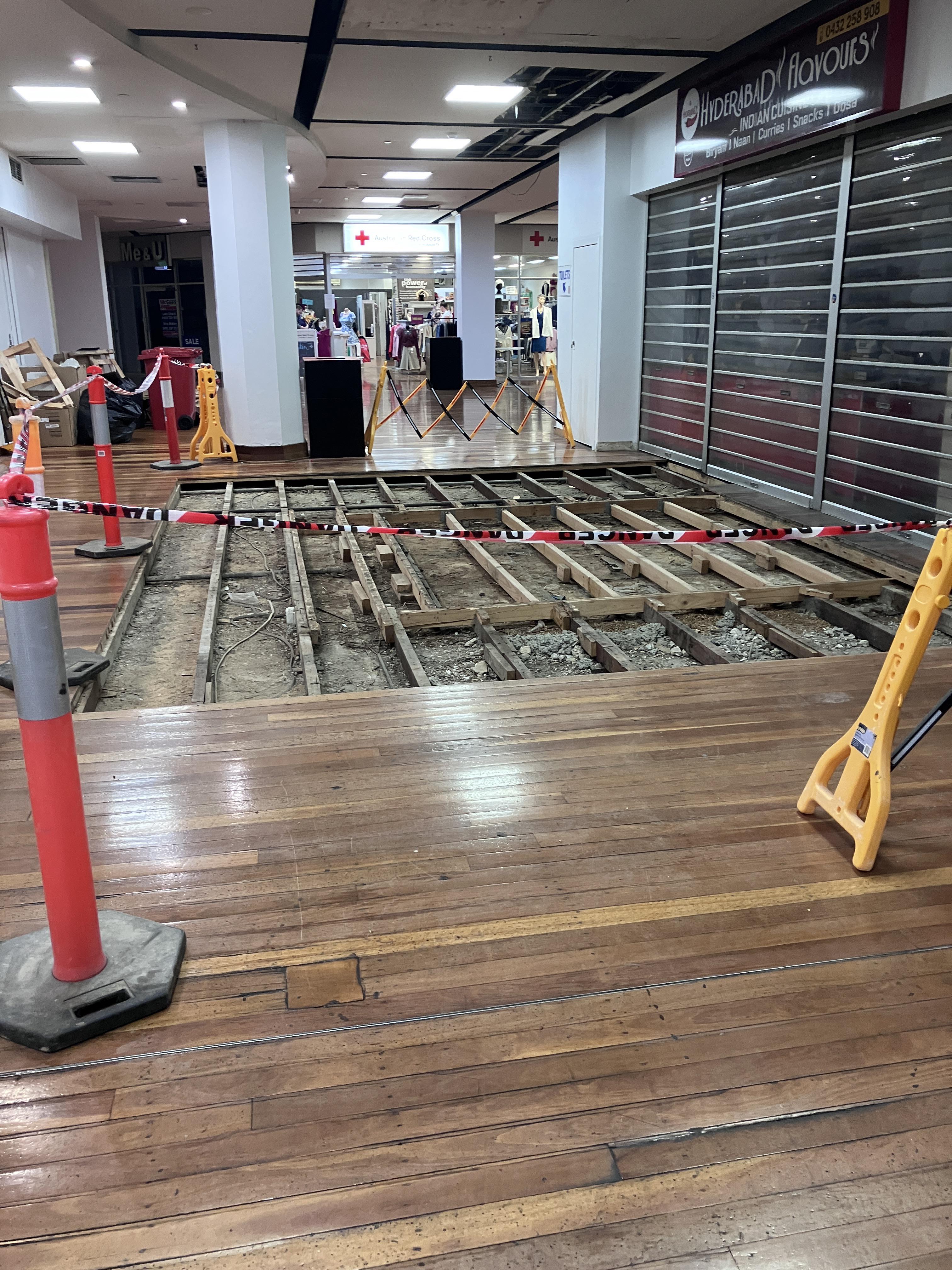 Ya gotta gimme back my floor! My customers are walking around on the floor joists