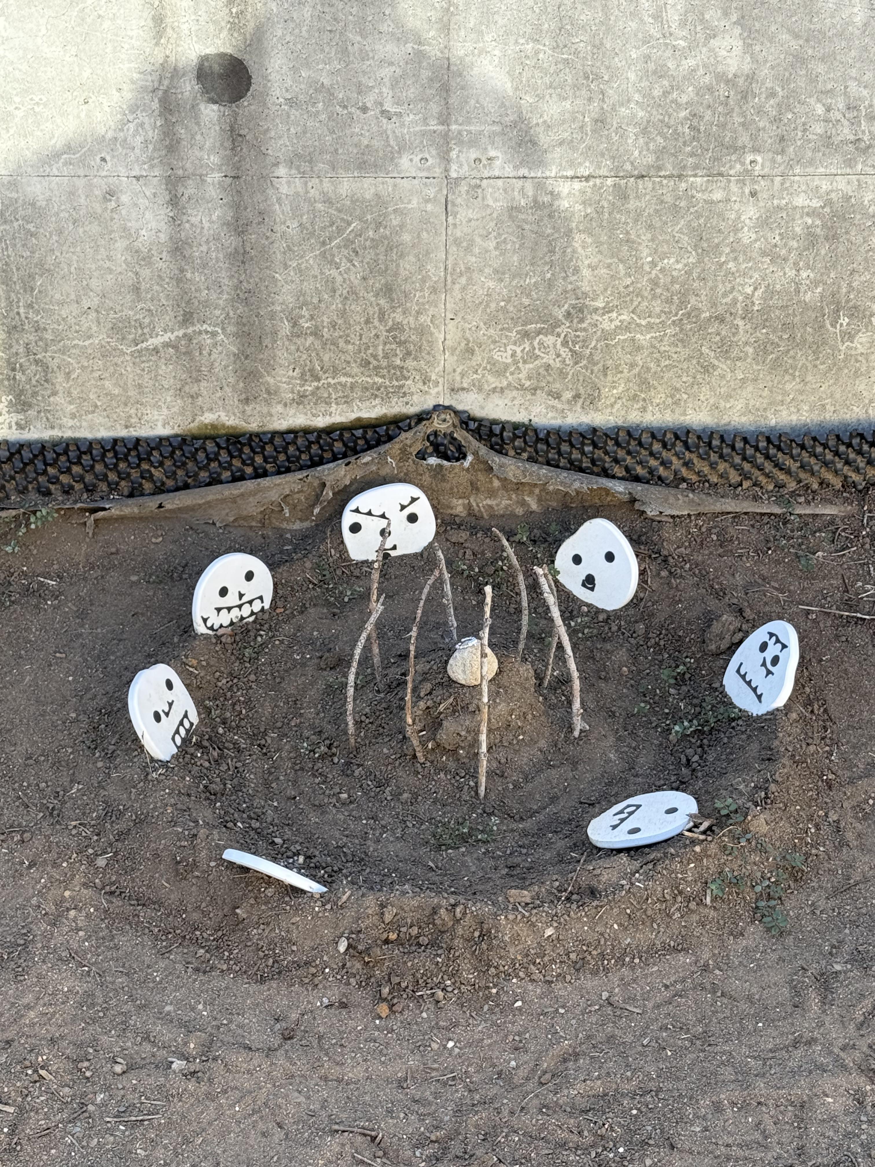 I’ve been spotting what appear to be hand made shrines in South Bank, hidden around the cultural precinct area. The photo is one of the more detailed creations that includes what appears to be hand made skull tiles, sticks and a piece of silver jewellery in the centre. The others are more simple, usually circles of stones with flowers etc. anyone know the story of who made them and what they signify?