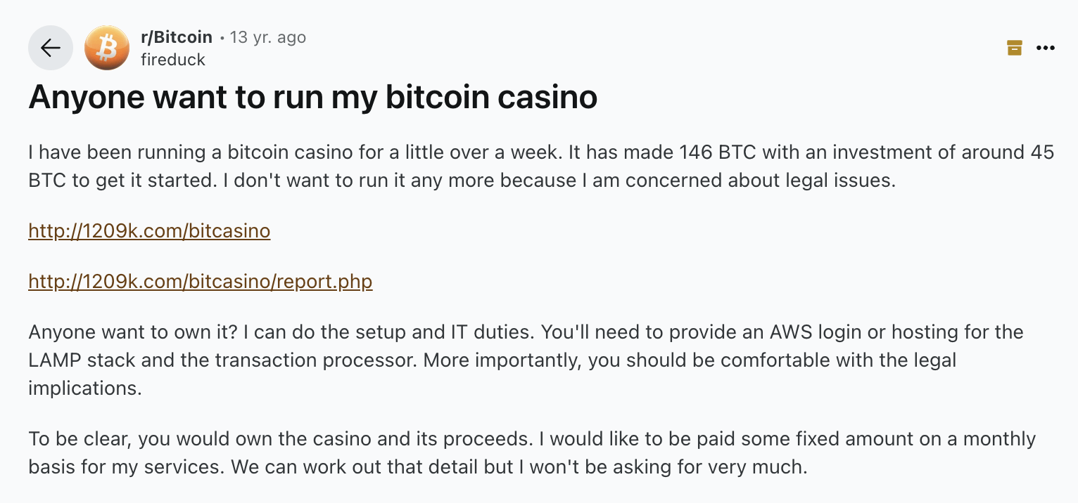 13 years ago, you could make 150 BTC for 1 week’s work 💀